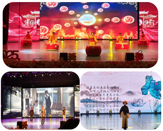 金龙腾云旧岁去,灵蛇献福启新篇。12月27日下午,理工学院(理工中专)师生齐聚图书馆一楼报告厅,隆重举行以“金蛇送福吉祥绕,玉宇迎春福泽绵”为主题的2025年迎元旦文艺汇演,800余名师生代表满怀喜悦,以丰富多彩的文艺节目共同迎接新年的到来。学校党总支书记邓生银、院长李蔚东、副院长马永新、李军,各处室负责人到达了现场,其他师生家长则通过线上直播的形式观看了这场精彩的演出。