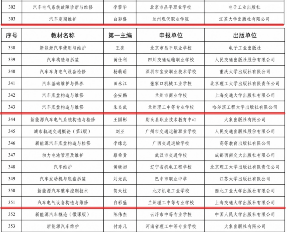 近日,教育部正式公布第二批“十四五”规划职业教育国家规划教材书目,理工学院汽车工程教学部白彩盛老师主编的《汽车定期维护》(江苏大学出版社有限公司)《汽车电气设备构造与维修》(上海交通大学出版社有限公司),朱良武老师主编的《汽车底盘构造与维修》(哈尔滨工程大学出版社有限公司)教材成功入选,标志着我校在“三教”改革领域取得又一国家级教学成果。